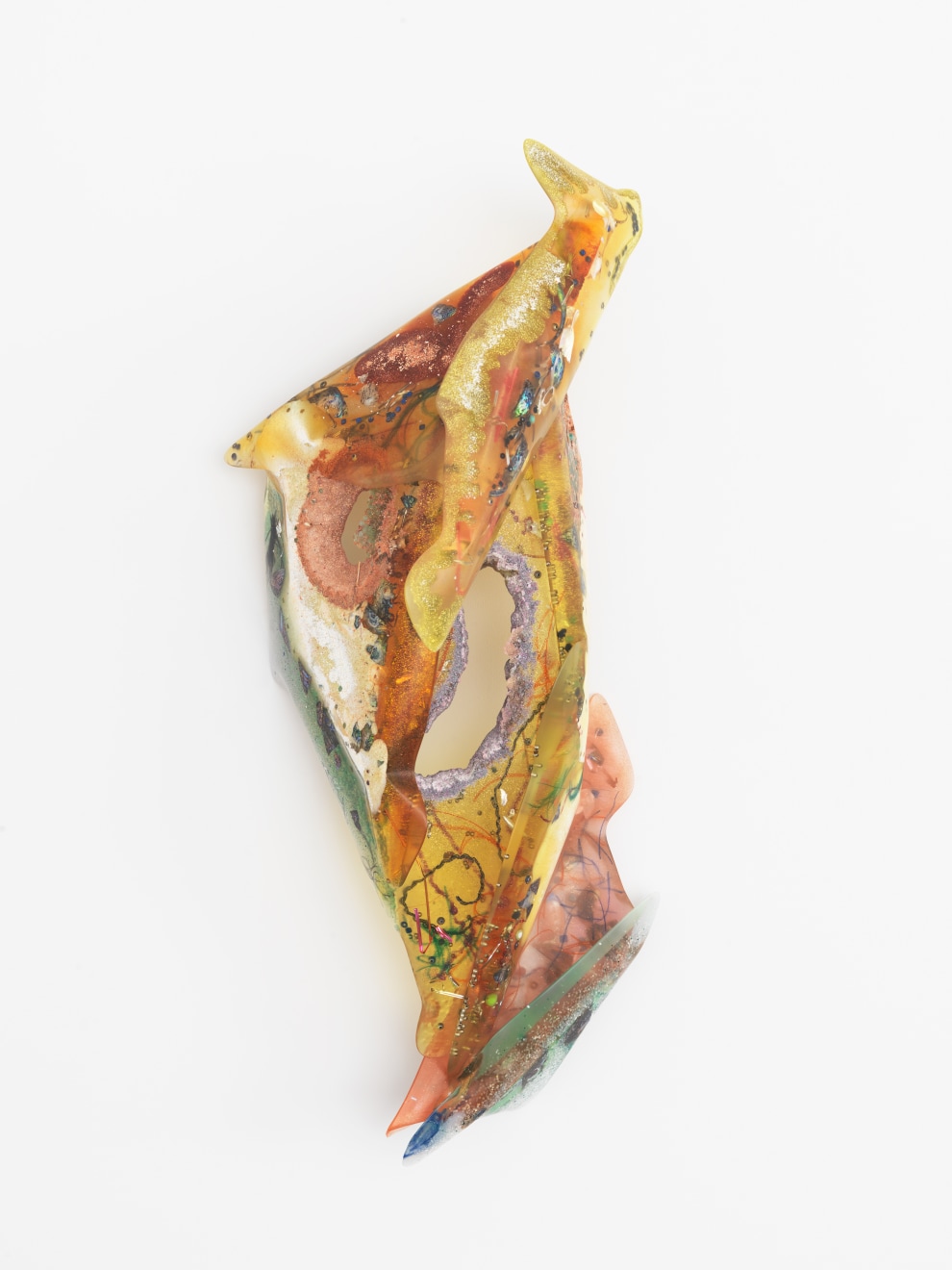 Van Buren has consistently tested material constraints and limitations and in doing so questions the definition and direction of sculpture. He impregnates his signature polyester biomorphs with materials as seemingly disparate as dry pigment, costume jewelry, fiberglass, wallpaper paste, and glitter, in order to present forms which simultaneously reject and depend upon our everyday material-driven culture. Through the creation of his amorphous, uncomfortable and inconsistent forms, Van Buren displays a career-long fascination with the relationship between natural/organic forms and man-made/inorganic materials; especially their ability to mimic and feed into one another.
