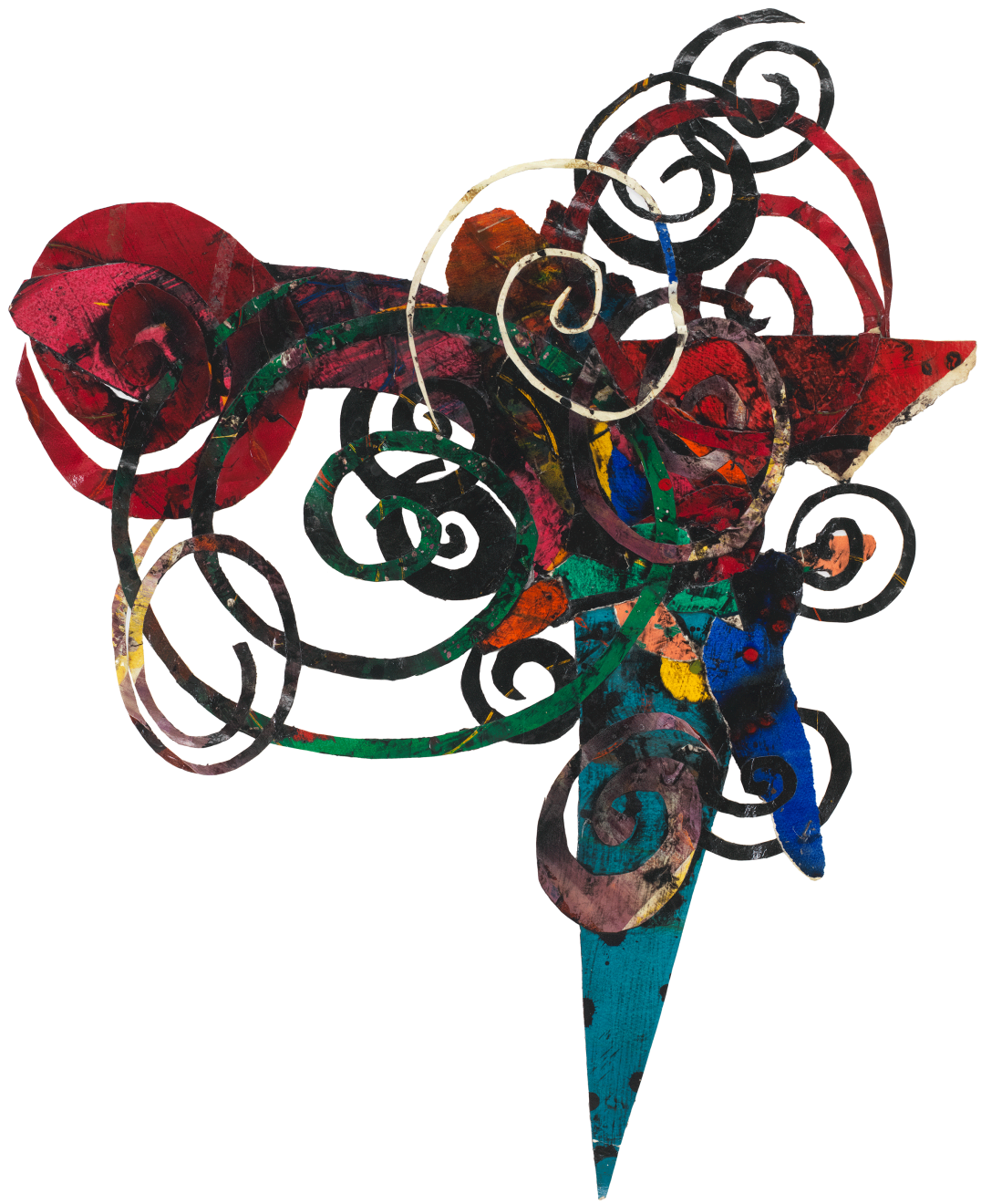 The exhibition provides an in-depth look at the artist's work from 1978 to 1989—hulking masses of richly colored cut and torn paper mounted directly to the wall. Works in the exhibition such as Humbird (1989) illustrate the vibrance and sheer dynamism of Loving's work from this period. As in his famed “torn canvases” of the early 1970s, the artist dispensed with notions of centralized composition, figure/ground separation, and pictorial frame. In works like Humbird, he combined hundreds of pieces of cut and torn paper into an abundance of overlapping patterns and shapes. Their rich and intuitive array of colors stretch irregularly, spiraling outward, surrounding the space, and engulfing the viewer.