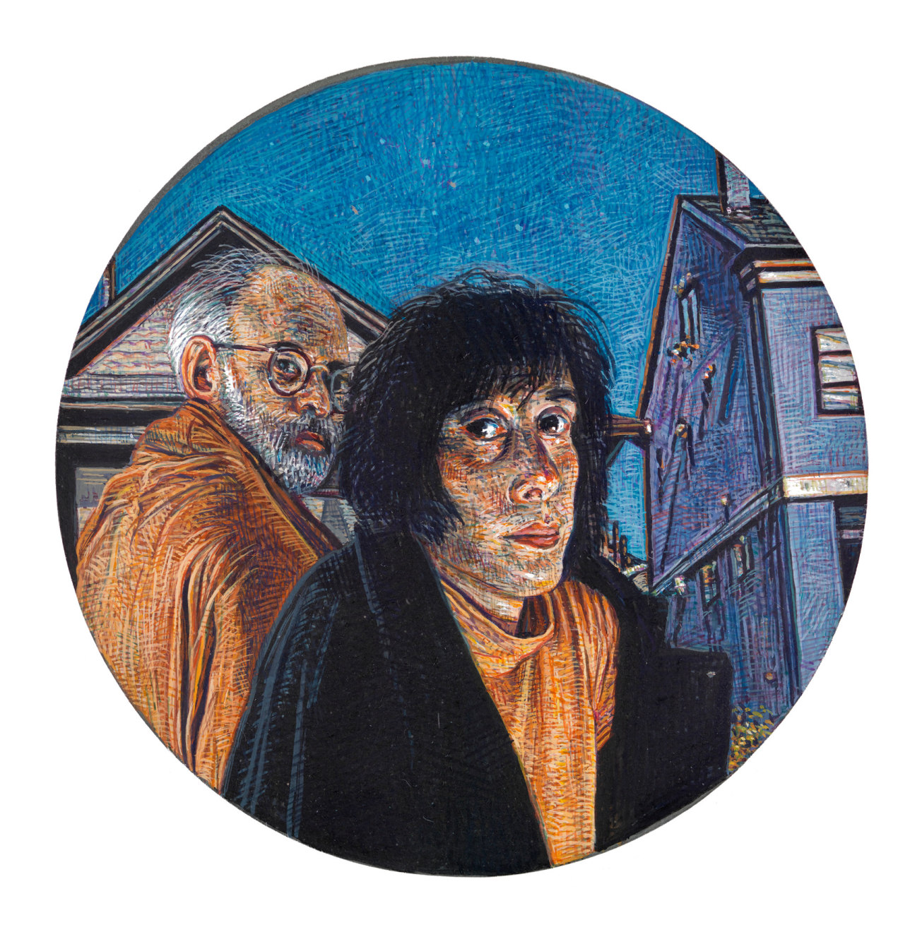 Mark Greenwold’s meticulously detailed, psychologically complex paintings from the 1980s and 1990s are multifaceted explorations of the issues and complexities of life. A self-proclaimed “emotional cubist,” the artist revels in the blurred and fragmented narratives that his paintings create. In works such as The House (1988) the artist asks us not to look at the inside of his life, but at our own, warts and all. Greenwold’s famously laborious process mirrors the psychological intensity of his paintings. The artist works under magnification, like a jeweler, employing the tiniest of brushes. He builds up the surfaces stroke by stroke. The result is a kind of delirious realism in which everything portrayed, however realistic, is actually composed of thousands upon thousands of beautiful abstractions.